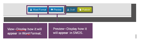 When you have finished making changes to your tool, review your tool in Word form and in Preview mode by using the buttons at the bottom of the screen.