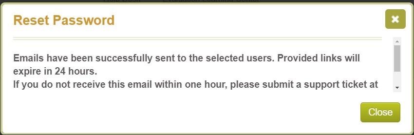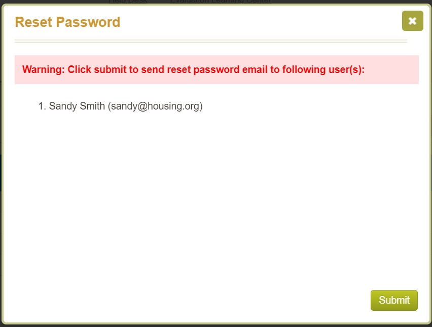 A Reset Password dialogue box will appear to give a final warning regarding this action.