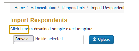 - The system will take you to a page labeled Import Respondents. Select Click here to access an Excel template: