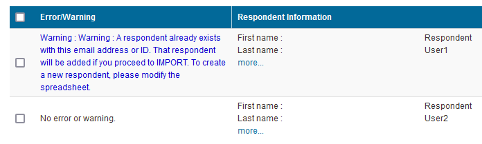 - Duplicates in email addresses (each respondent must have a unique email address).