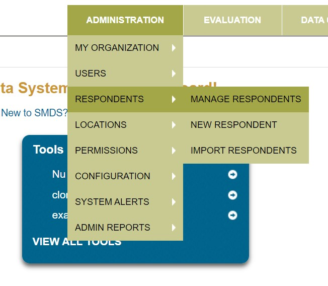 - SMDS users can import respondents along with their corresponding response and data into a specific evaluation. See Generating Templates and Importing Data for instructions.