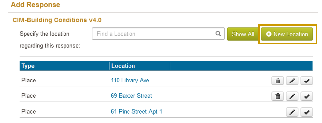 - To enter a new response, click the +New Response button at the bottom of the page.